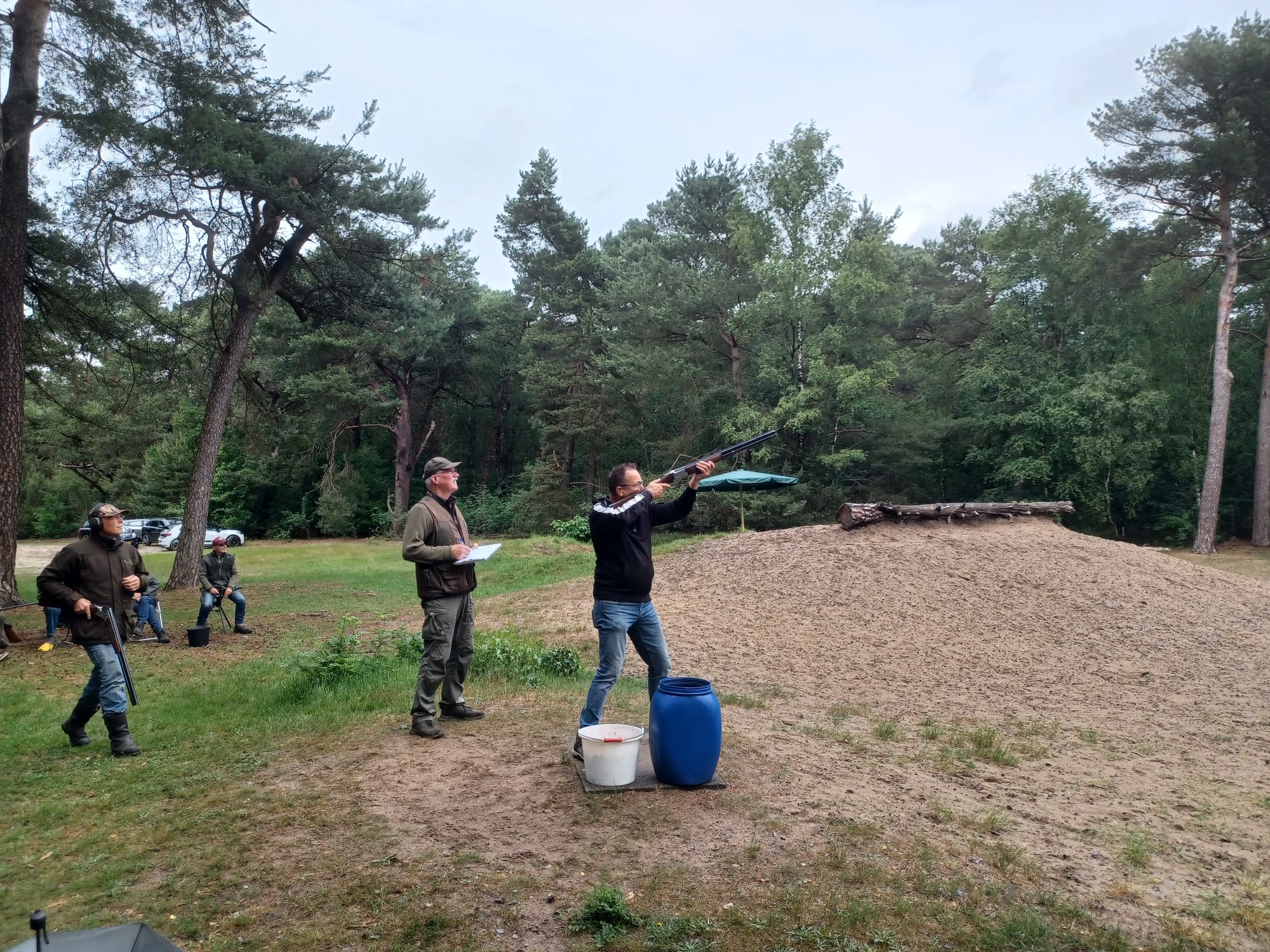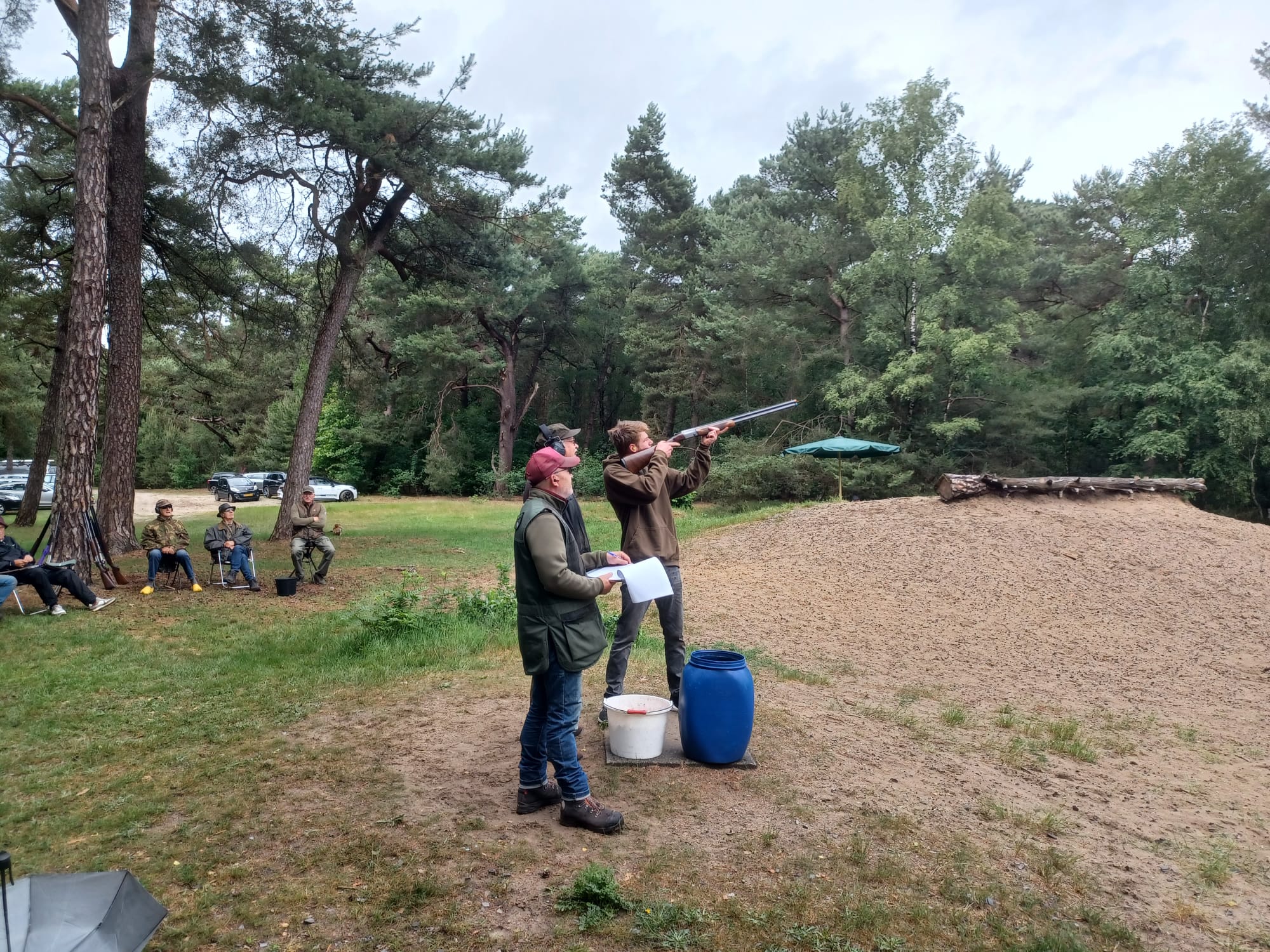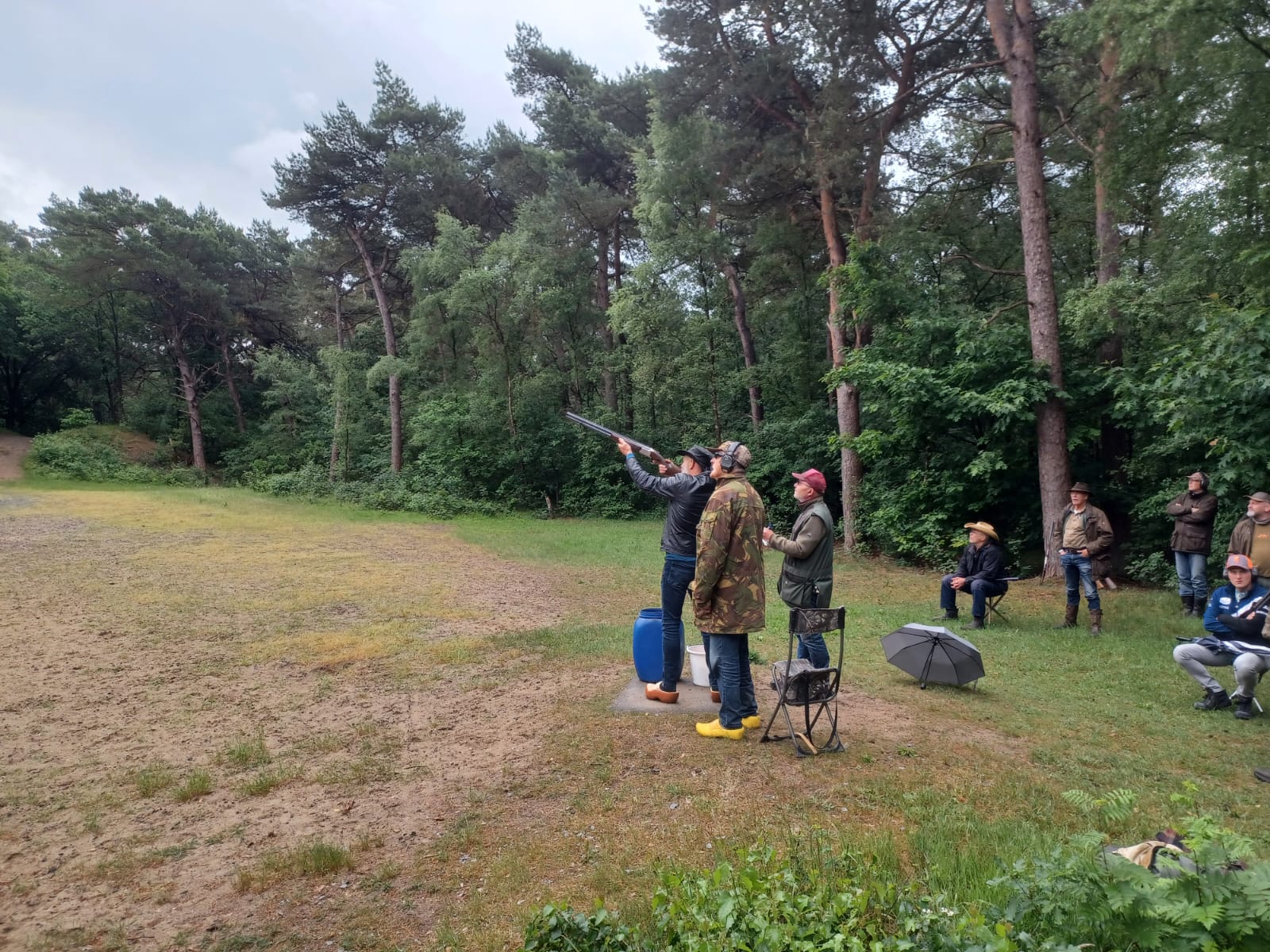 Een spannende bijeenkomst in een prachtige omgeving in het bos bij Ermelo, zowel qua weer, als wie er deze keer met de eer zou strijken. Het weer viel uiteindelijk mee, en ook de wedstrijd was spannend want de beide schietverenigingen komen steeds dichter bij elkaar terwijl kleiduiven schieten niet in het ‘metier’ van de Schutters van Gelre is.
