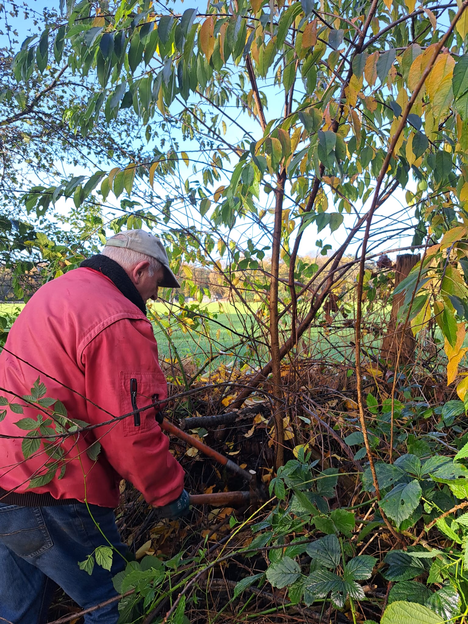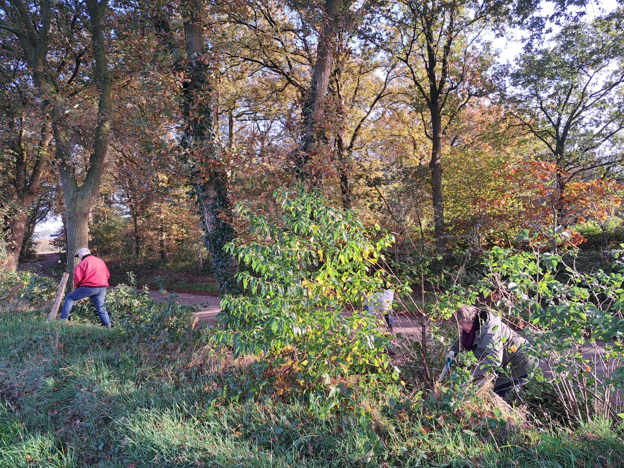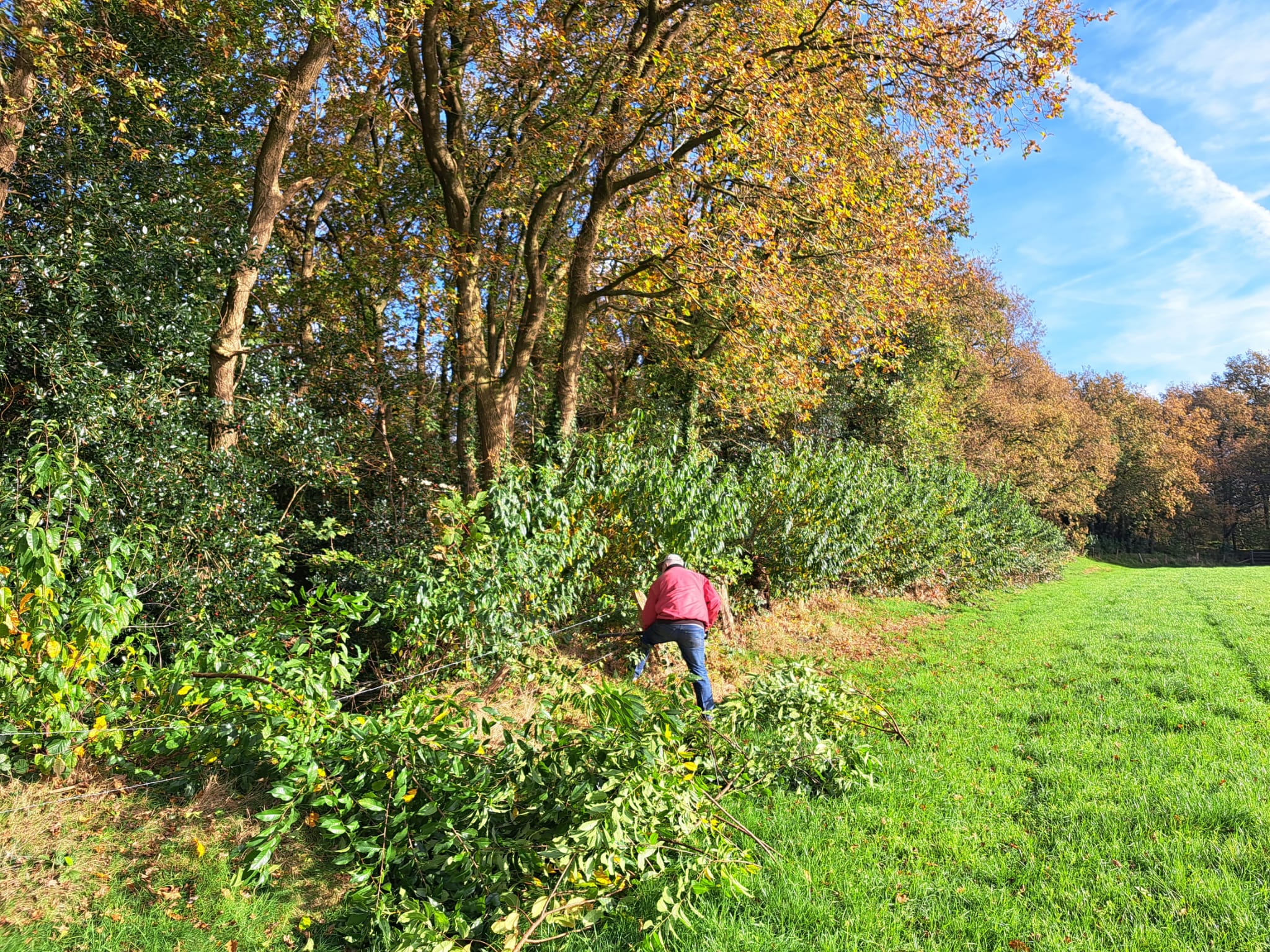De Amerikaanse vogelkers is lastig bestrijden want hij loopt makkelijk weer uit op plekken waar hij afgezaagd wordt. Maar de aanhouder wint, dus volgend jaar gaan we weer aan de slag tijdens de natuurwerkdag!