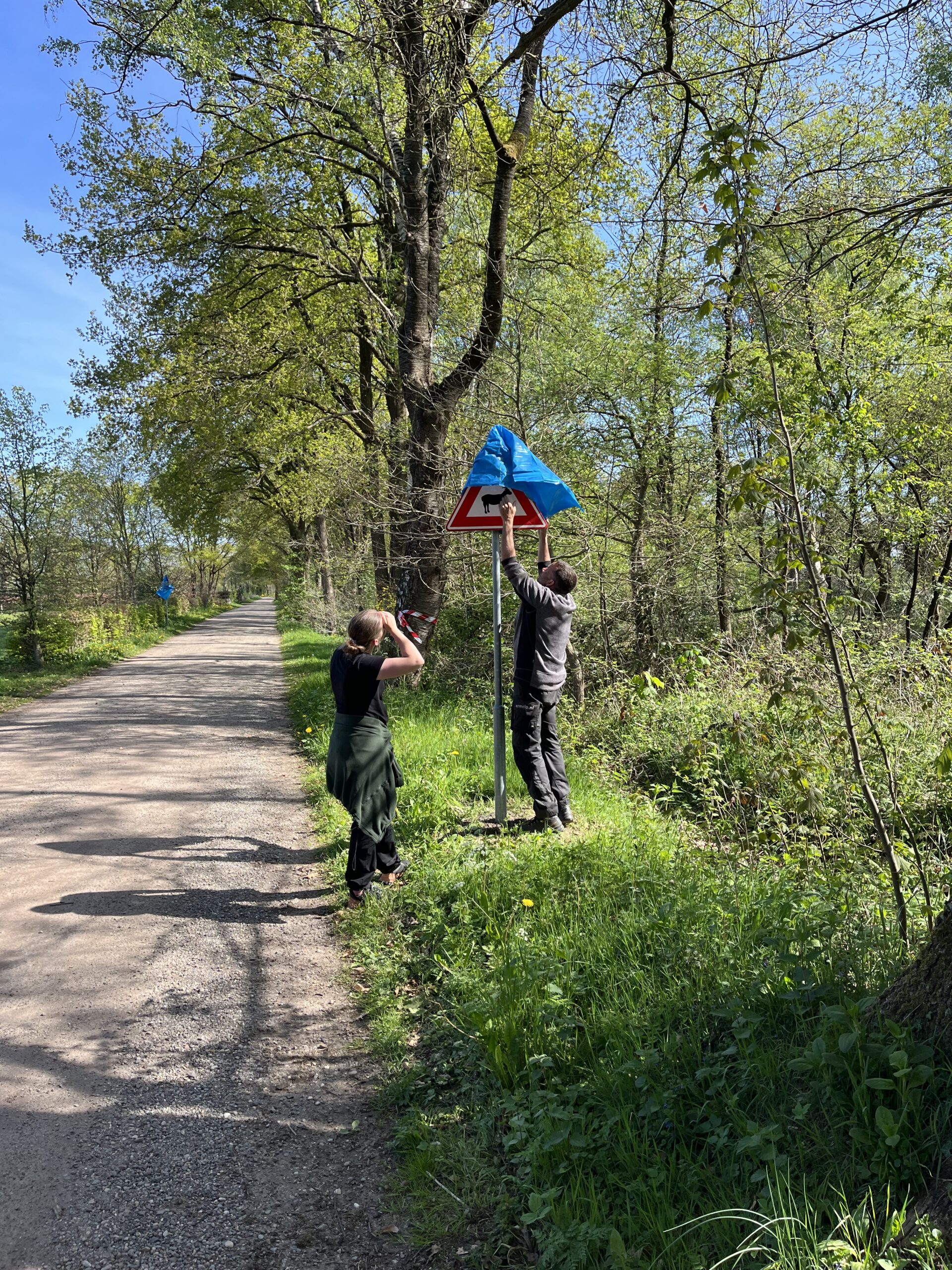 Het blijken twee gevaren borden voor overstekende landgeiten! Nog een week en dan steken de landgeiten dagelijks 2 keer over naar en van de hei zodat ze de doorzichten open houden. Pas dus op als je er langs rijdt; er kan een kudde geiten plotseling oversteken!