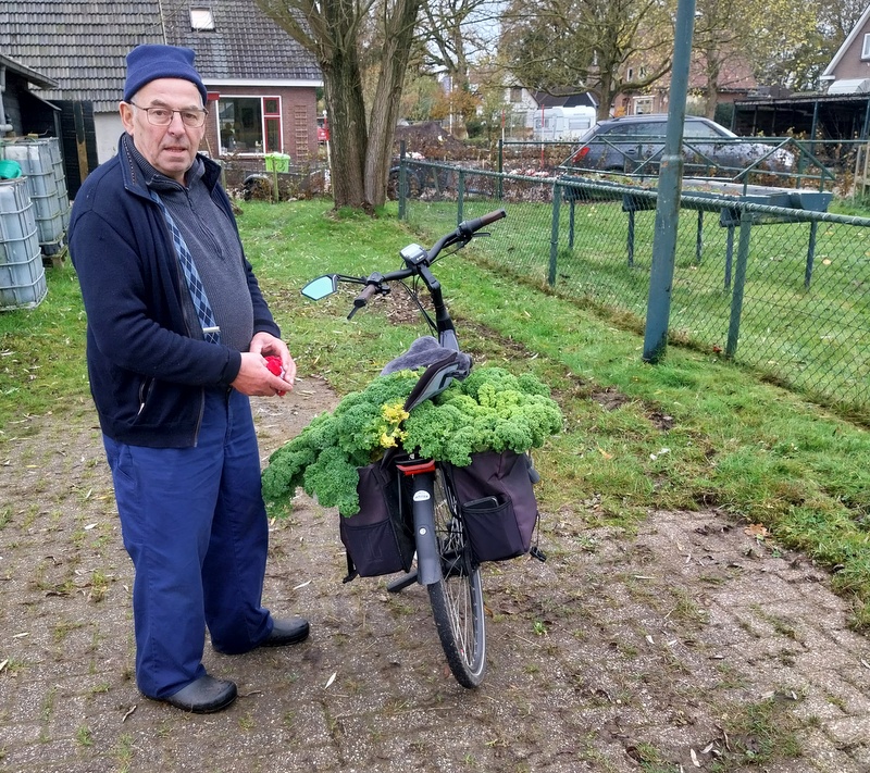 In dorpstuin Neeltje Peatershof is de boerkool, groenlof en spinazie rijp om te oogsten. Dus wie belangstelling heeft, donderdag ochtend staat de kruiwagen met de tekst “HIER VERKRIJGBAAR” weer aan de weg. De vrijwilligers genieten van de mooie producten die de tuin oplevert. Tuineren is een mooie hobby