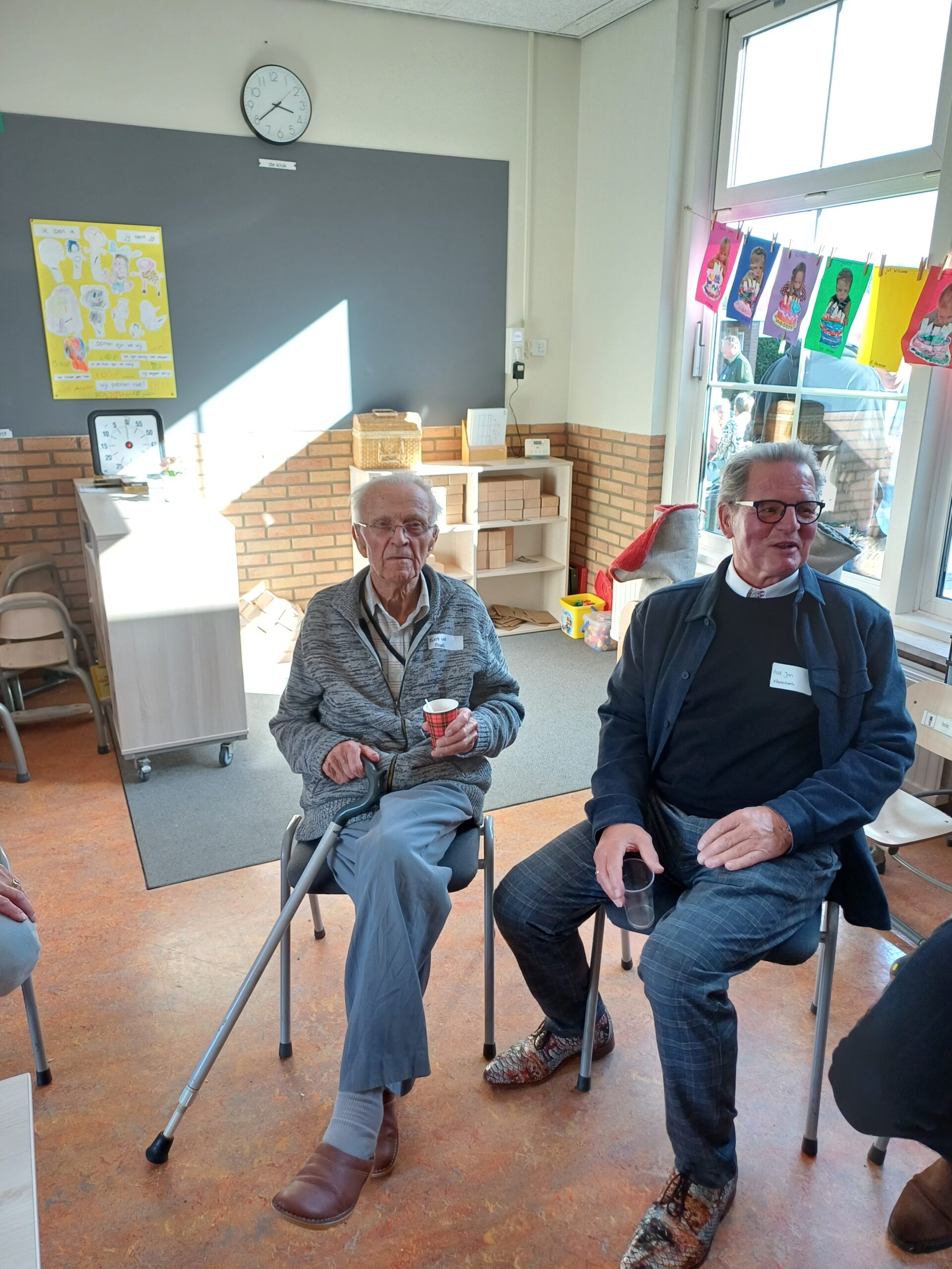 De oudste bezoeker deze middag was Evert van de Broek, thans 92 jaar. Zijn schooltijd was tussen 1939 – 1945 zijn juf / meester waren Mevr Schuurkamp en meester Schuitemaker.
