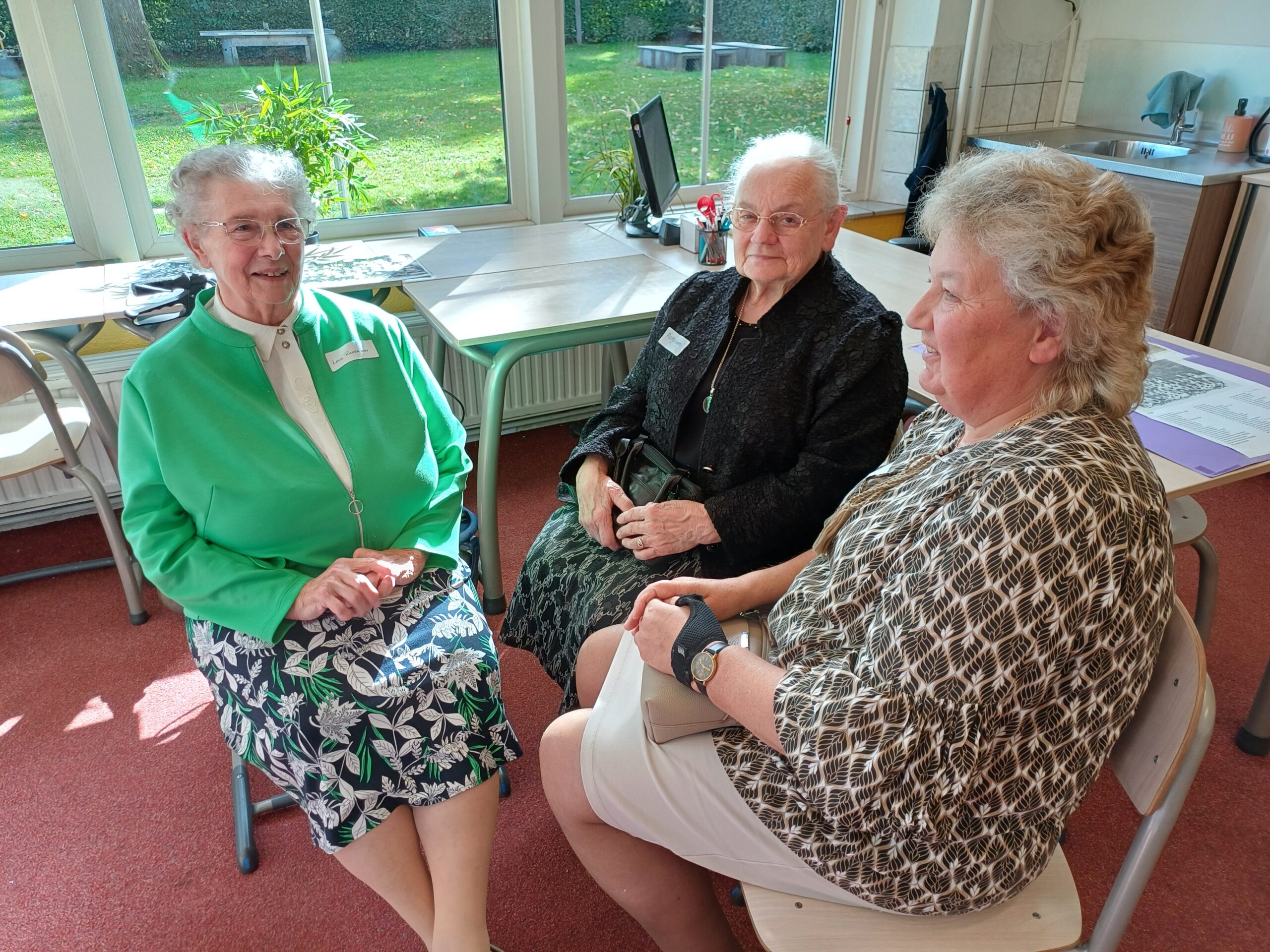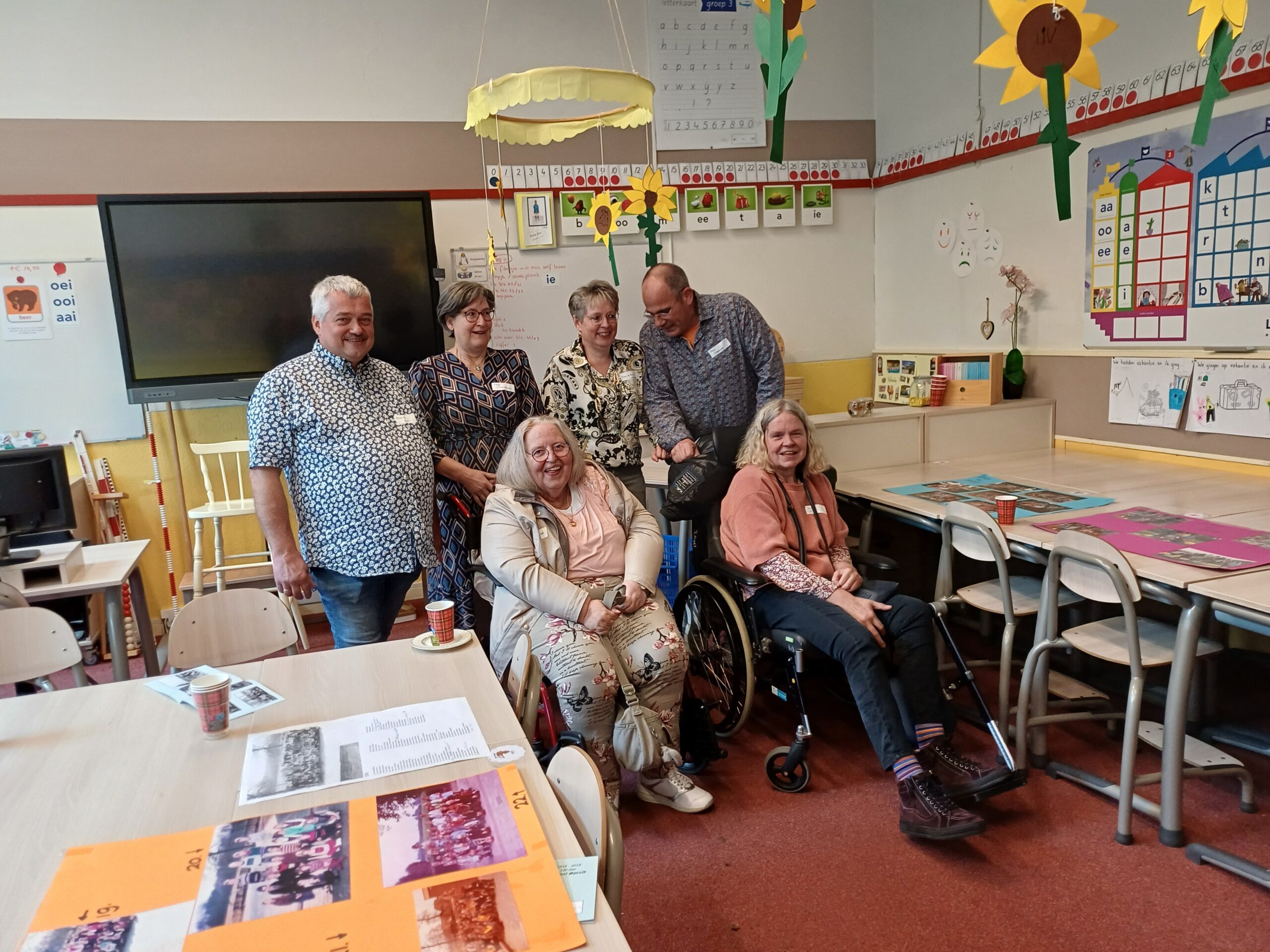 Héél bijzonder is wel de komst van juffrouw van Vliet, zij kwam deze middag als eerste, met de taxi vanuit Tilburg in de rolstoel. en laat op de middag weer terug, zo’n twee uur reistijd aldus de juf. Haar lesjaar was rond 1974.