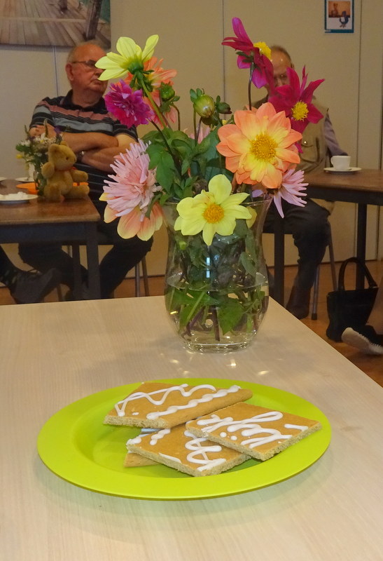 Op deze mooie 4 oktober woensdagmiddag was het weer een genoegen om bij elkaar te zijn als Speuld Plussers. De middag begon zoals gebruikelijk met koffie en de mededelingen. Daarbij waren een paar bijzonder feiten te melden, Aalt Schuur was jarig geweest, 90 jaar inmiddels een bijzonder mijlpaal. Cornelis Stip was ook jarig geweest, 86 jaar oud. We zien hem allemaal wel rijden op zijn scooter, door bos en heide de omgeving aan het verkennen. Een bijzonder voorrecht als dat op die leeftijd nog mogelijk is. Het heerlijke banket deze middag was een geschenk van fam. Van Diermen, het was origineel Spakenburgs Hart zoals dat heet. Fijn dat Speuldenaren kennis konden maken met deze Spakenburgse banketbakkers delicatesse. Op de tafels stonden boeketten samen gesteld van bloemen uit de dorpstuin, prachtige uitbundige kleuren op de tafels maakt het extra gezellig. Na de koffie de gezelschapspelen. Er waren verschillende spelletjes, maar het sjoelen was wel het meest favoriet. Er werd zeer hoog geschoord in de felle strijd. Toen de strijd van het gezelschap spel wat was geluwd kreeg iedereen een heerlijk ijsje aan geboden door Cornelis Stip van weg zijn verjaardag. Het was een bijzonder geslaagd middag. Wij kijken al weer uit naar volgende keer, woensdag 8 november. Dan hebben we het plan om met elkaar de Hut van Cartouche te gaan bezoeken. We vertrekken met elkaar om 14.30 uur vanaf de Speuderbrink. Wees welkom en neem de buurman of buurvrouw mee.