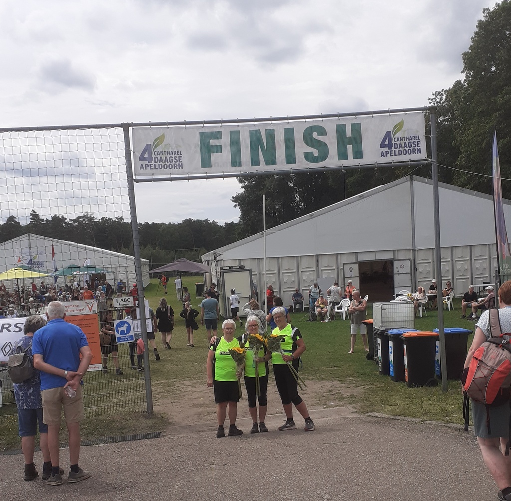 Op 14 juli was de laatste dag van de Internationale Apeldoornse vierdaagse. Enkele dames uit de buurt hebben 4 dagen elke dag 20 km gewandeld. Een heel knappe prestatie. Want soms was het tropisch warm, soms een blaar aan de voet of spierpijn de volgende ochtend ze gingen door en haalden de finish. De Apeldoornse 4 daagse is een bijzonder mooi wandel evenement. De wandelingen gaan door Hoogsoeren, de paleistuinen van het Loo, en de lommerrijke lanen van Berg en Bos en bossen rondom Ugchelen. Bovendien is het minder massaal als de Nijmeegse 4 daagse en dat maakt het ook een heel gezellig gebeuren. Neemt niet weg dat het een bijzondere prestatie is om 4 dagen achter elkaar, elke dag weer de lichamelijke en mentale kracht te vinden om door te gaan en de routes uit te lopen van start tot finische. Bijzonder waardering voor deze sportieve prestatie.